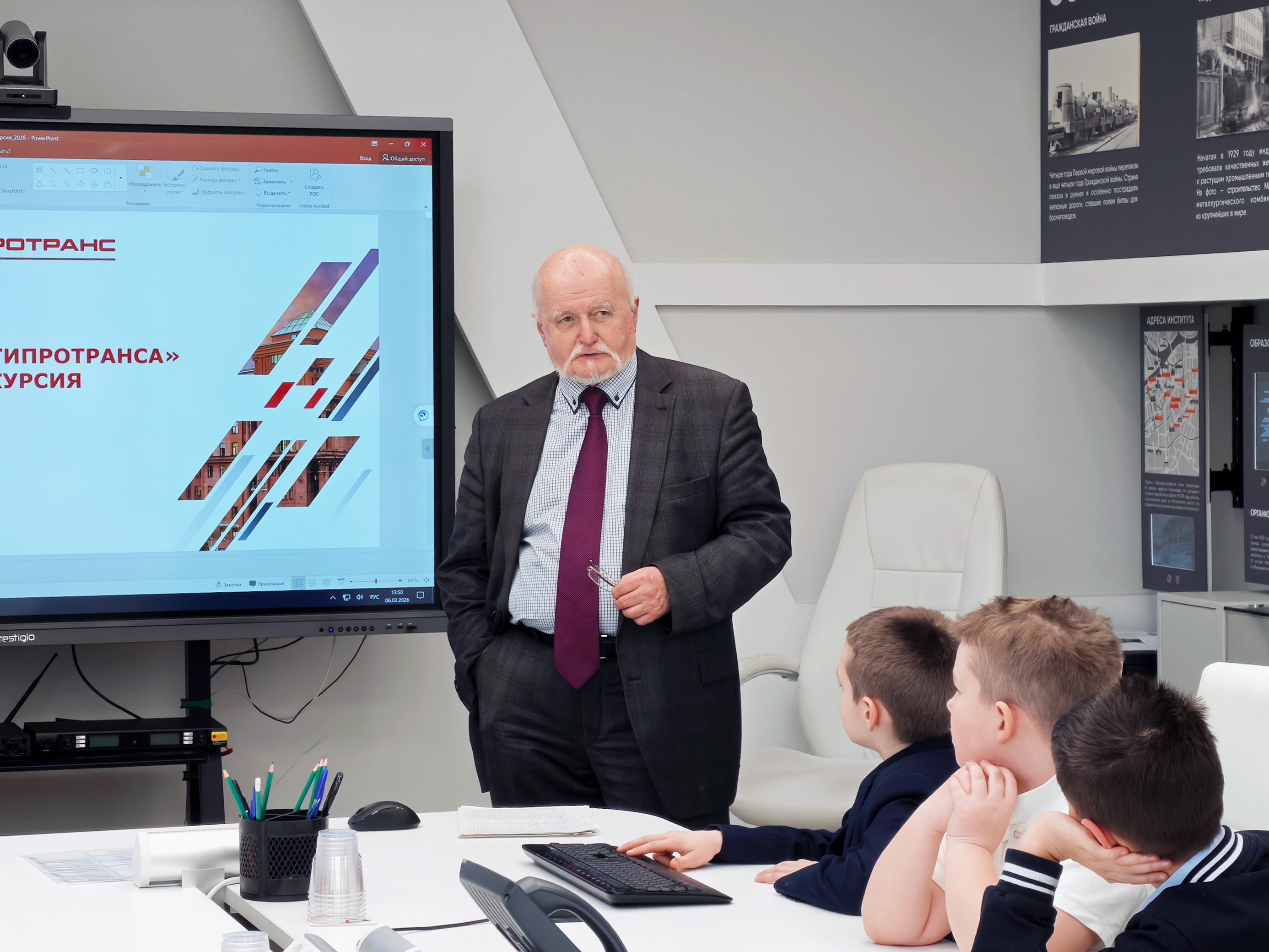 06 марта в музее АО «Ленгипротранс» (входит в «Нацпроектстрой») заместитель главного инженера Алексей Петрович Конюхов провел экскурсию для учащихся Гимназии № 363.